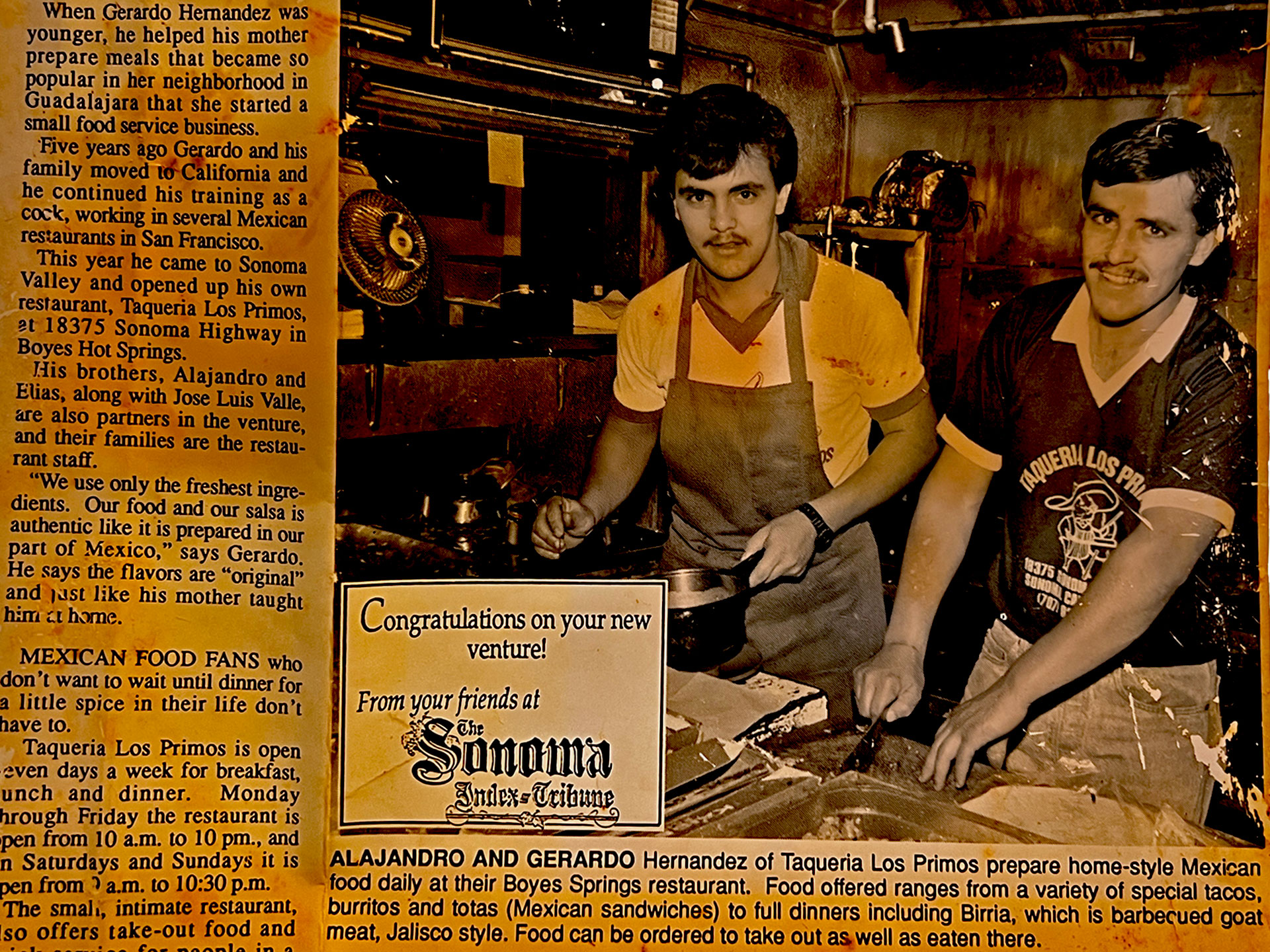 After honing his craft in San Francisco, Gerardo, along with his brothers Alajandro and Elias, along with Jose Luis Valle, proudly present Taqueria Los Primos in Boyes Hot Springs.